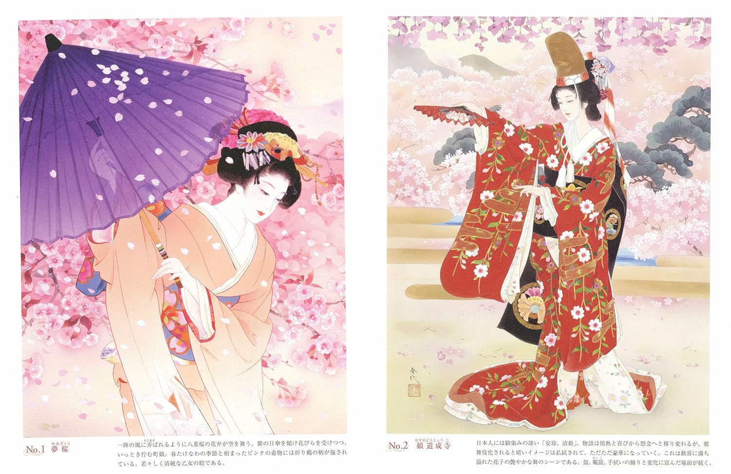 The book is a part of the Illustration book series and is published by MDN Corporation in Japan. Expect stunning illustrations of women surrounded by nature, whether it’s cherry blossom or illuminated by the autumn moonlight.The depictions of seasonal plants and kimonos are also a big attraction.