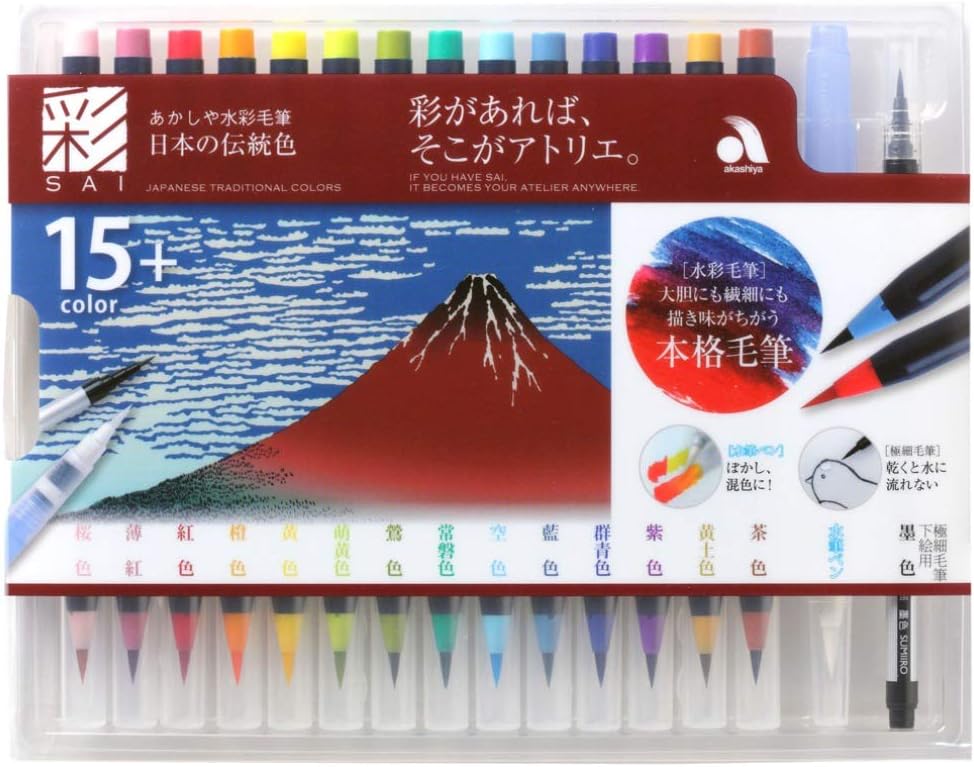 - Contents: Akashiya SAI High Quality 15 Watercolour Brush Pen Set CA350S-03