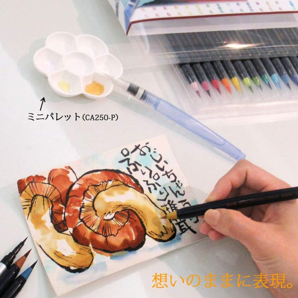 Made by Akashiya, the renowned brand from Japan established in 1716, the watercolour brush pens in this set are perfect for creating a range of effects, from smooth gradients to textured strokes, making them ideal for both professional and amateur artists.