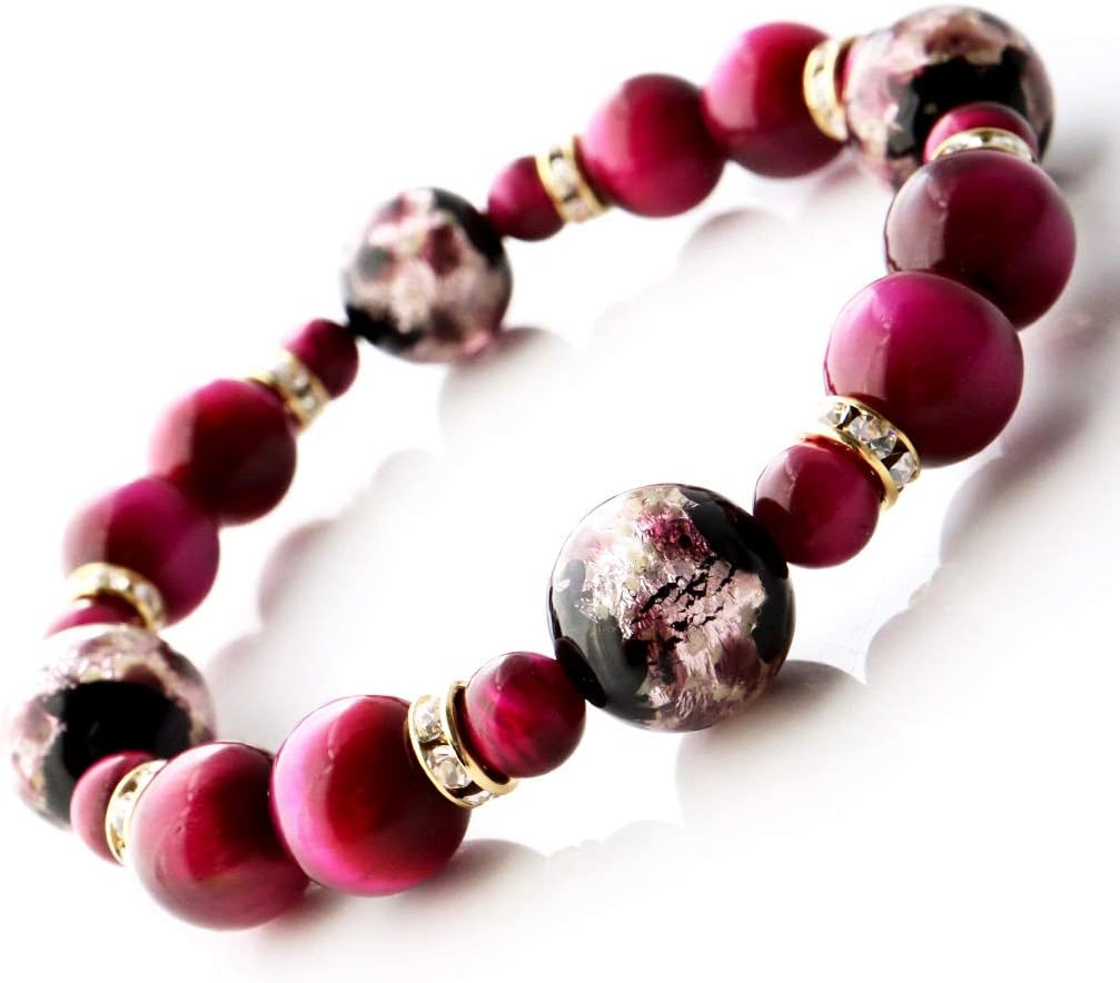 - the beads are made with Firefly Glass fluorine glass pink 0.5 inch (12 mm) (phosphores), pink tiger eye 0.4 inch (10 mm), 0.2 inch (6 mm)