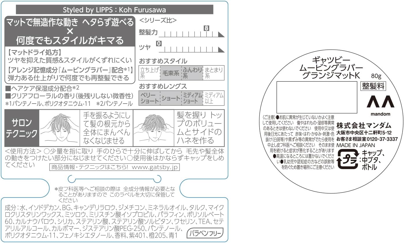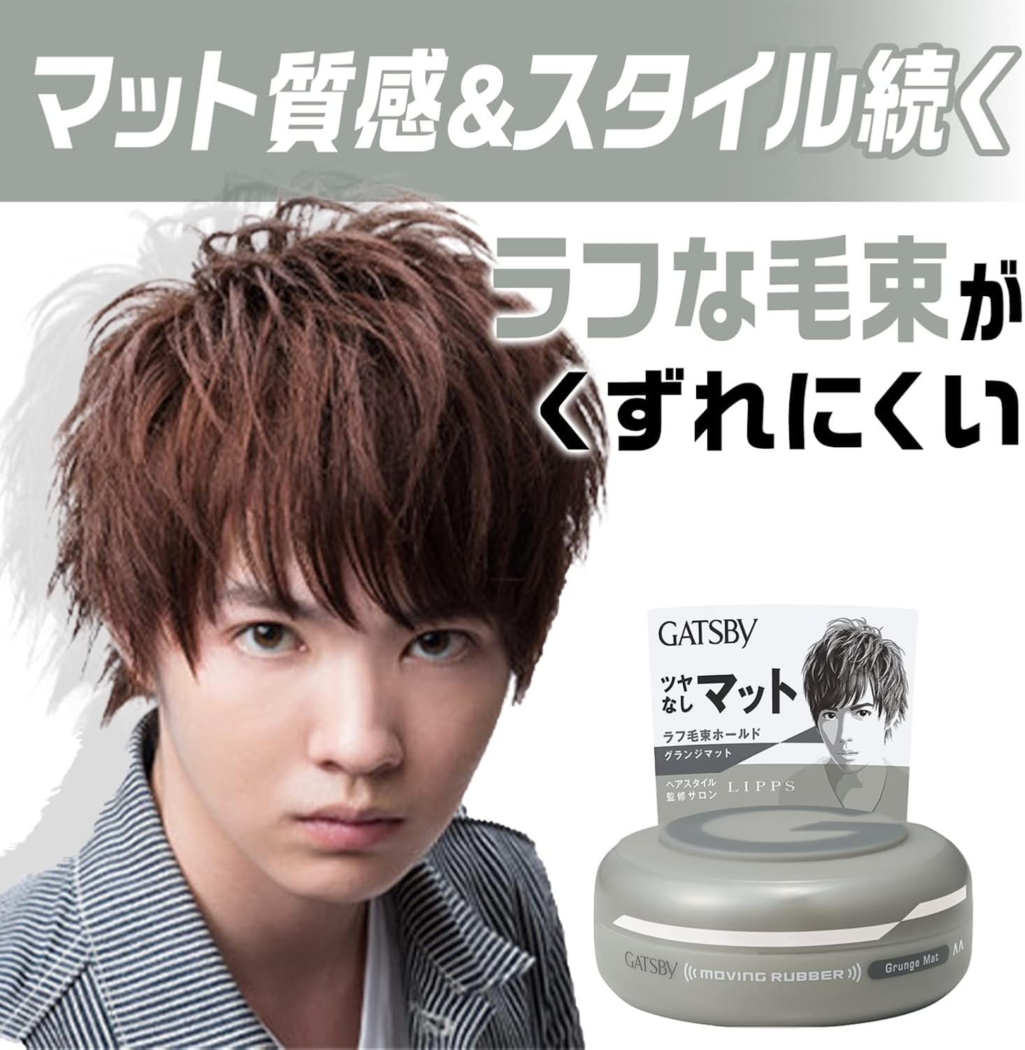 Introducing GATSBY Moving Rubber Grunge Mat Hair Wax (80g). Unleash a effortlessly cool, dry texture with the GATSBY Moving Rubber Grunge Mat Hair Wax. This innovative styling clay from Japan's premier men's grooming brand is engineered to give you high-hold, flexible movement, and a coveted, completely matte finish.