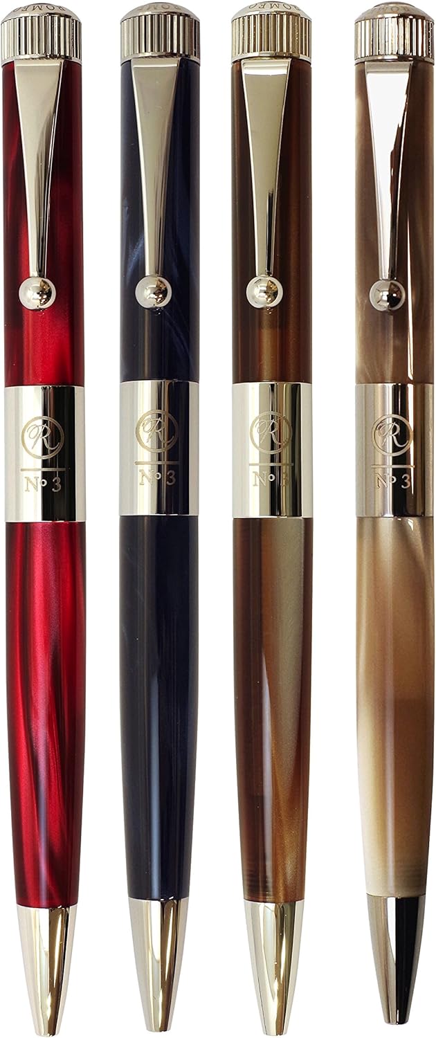 The main body material is acrylic, and the metal parts are plated brass, giving it a sharp accent. The design of the crown is based on the motif of a clock crown, which evokes the image of the beginning of a special time in writing. Itoya Romeo R234 No. 3 showcases retractable mechanism and the core of the pen can be disassembled by turning the crown.