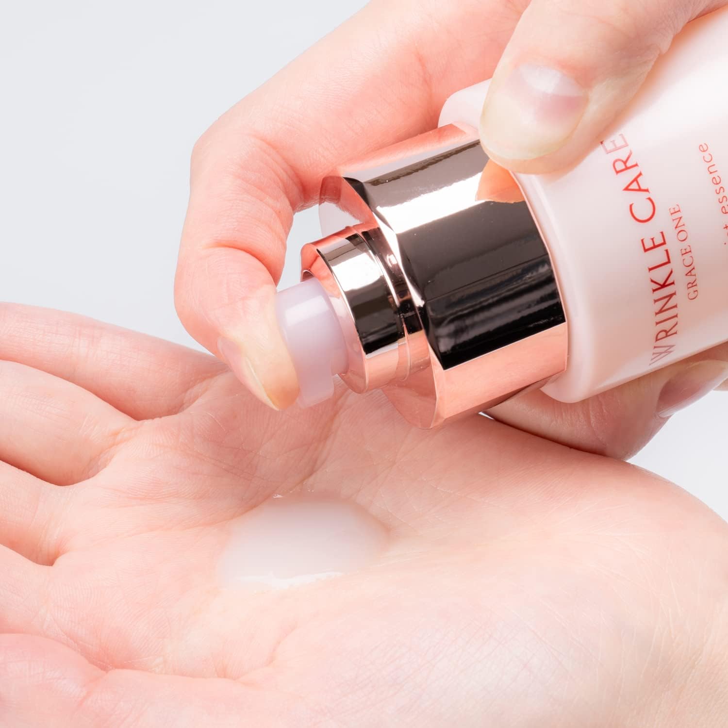 When using for the first time, please press the pump several times. After washing your face, take an appropriate amount of palm (about 2 to 3 pushes) and apply to your skin (face and neck). For areas where wrinkles are concerned, such as the eyes and mouth, it is more effective when stacked.