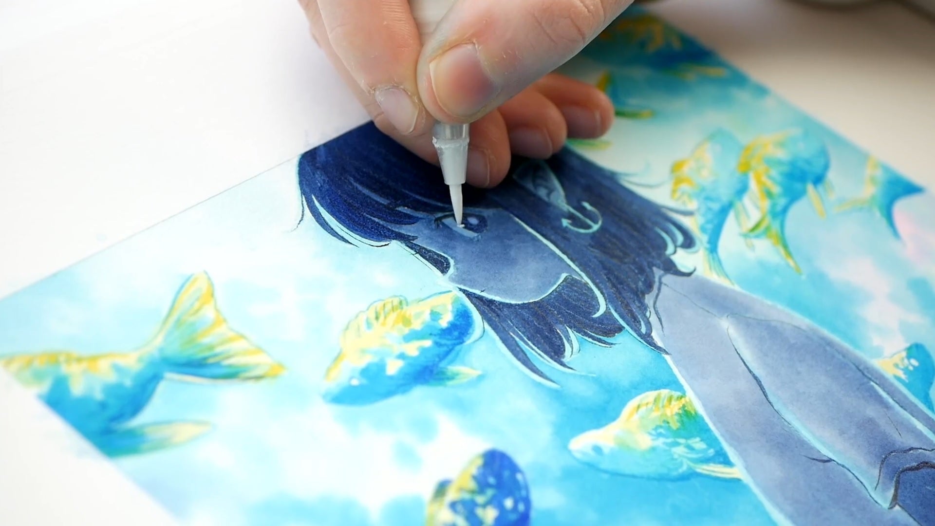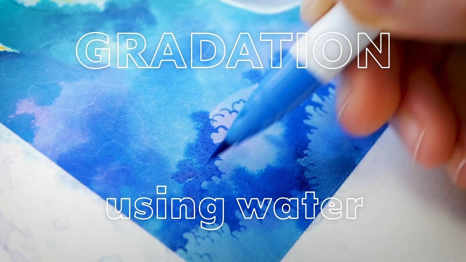 1) Taking two ZIG Clean Color Real Brush pens, for a few seconds gently touch nib-to-nib. Keep the two pens horizontal, with one slightly higher than the other, and ink will flow from the top pen onto the tip of the second (lower) pen.