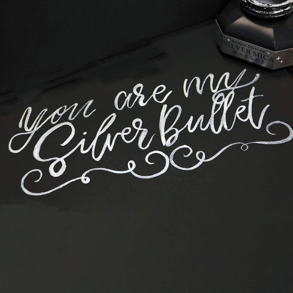 This luminous ink combines MICA particles with water-based pigment ink. Perfect as a gift for any Japanese or Chinese enthusiasts, collectors and students of calligraphy. To be used with brush, or calligraphy pen on dark paper. Its metallic silver colour adds a touch of sophistication to any project, making it a versatile addition to your art supplies.