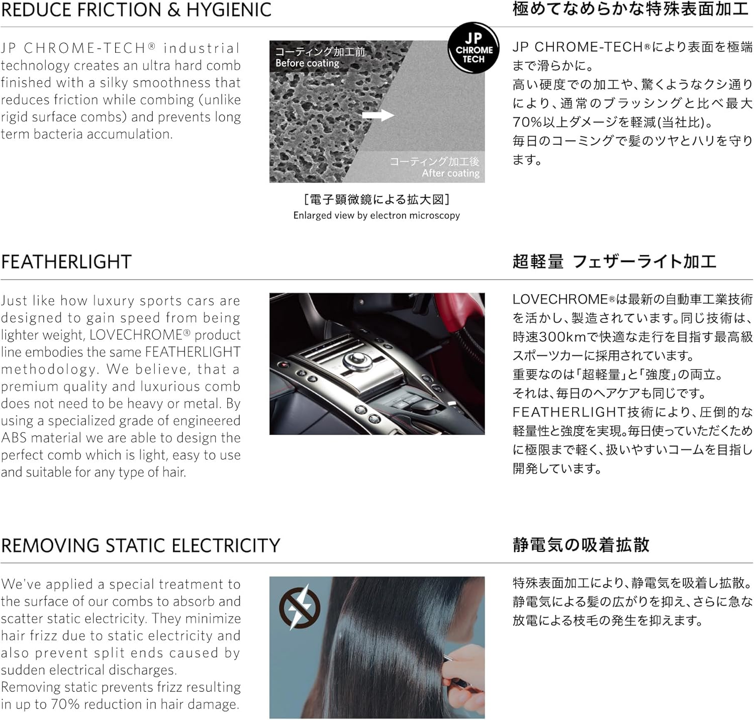 LOVE CHROME is a Japanese brand that specializes in premium, high-tech hair combs designed to minimize hair damage and enhance hair health and shine.