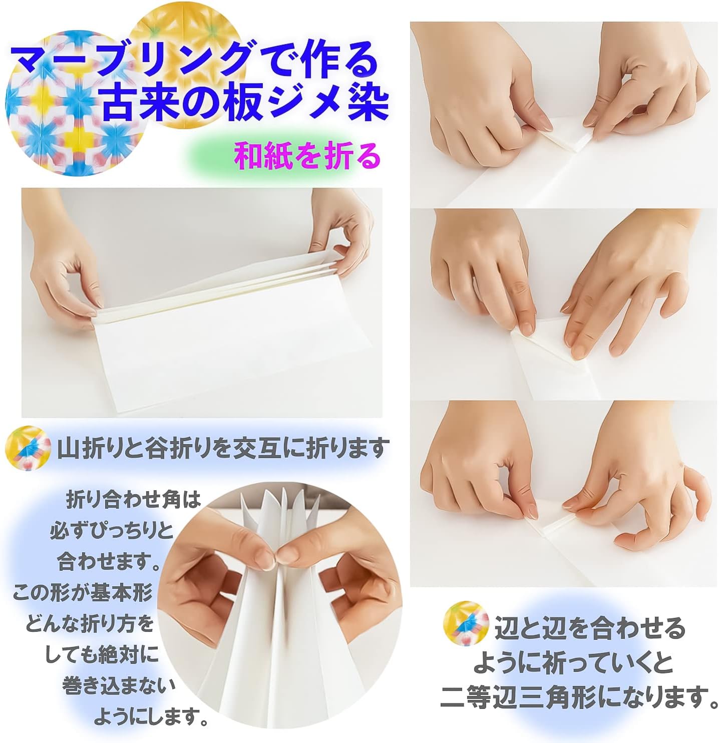 "Marbling" refers to a technique of floating paint, which is lighter than water, on the surface of water, and then shaking it or stirring it with a stick to create a complex pattern on paper. This technique, which is popular overseas as well, was named "marbling" because the randomly floating patterns resemble marble.