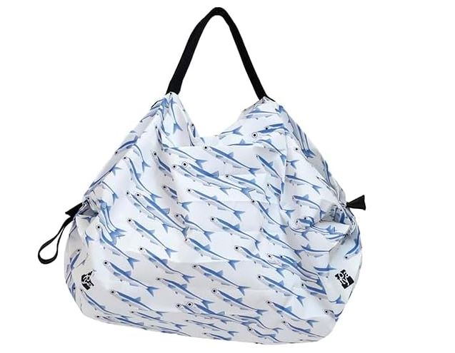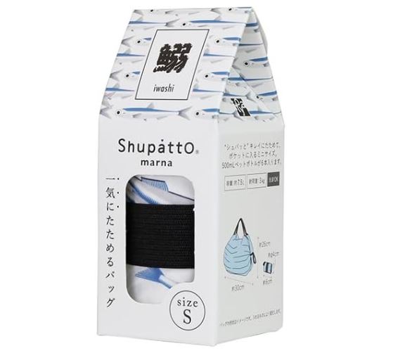 This compact and stylish MARNA Shupatto Eco Bag is perfect for a variety of occasions. Featuring adorable pattern of sardine (iwashi) on the white background, this Small sized bag is an ideal size for carrying your daily essentials on your commute, whether it's lunch, your must-have items for work or small grocery shopping on the go.