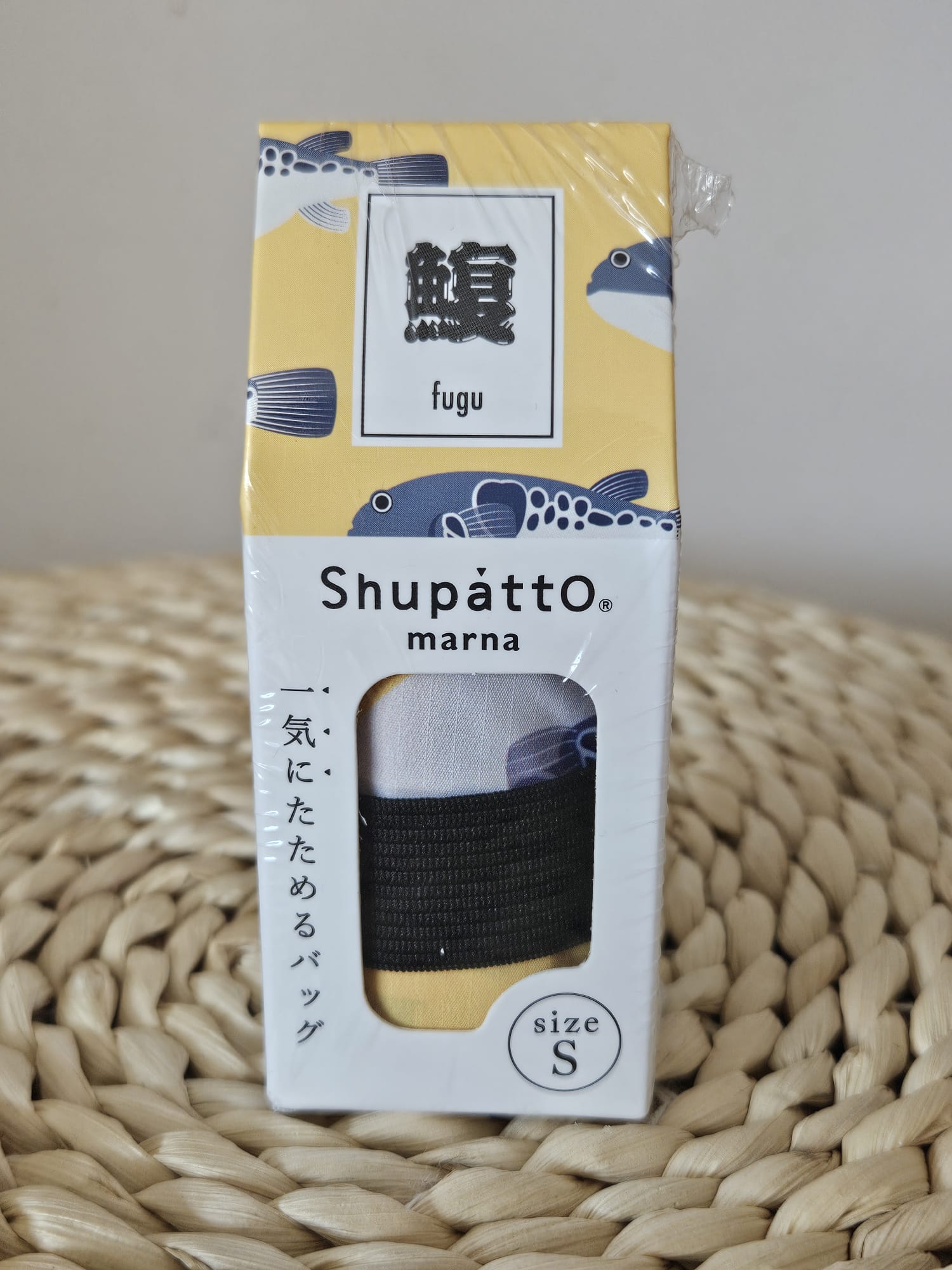 This compact and stylish MARNA Shupatto Eco Bag is perfect for a variety of occasions. Featuring adorable pattern of pufferfish (fugu) on the yellow background, this Small sized bag is an ideal size for carrying your daily essentials on your commute, whether it's lunch, your must-have items for work or small grocery shopping on the go.