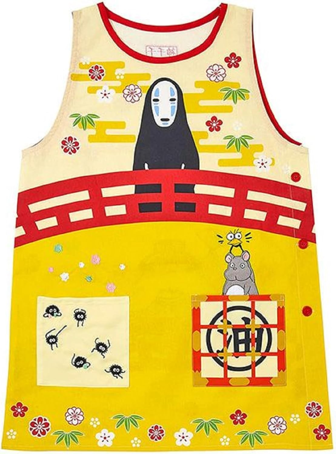Immerse yourself into the world of Ghibli fantasy with this Spirited Away themed apron featuring Kaonashi, known as No-Face, measuring 84cm × 61.5cm.