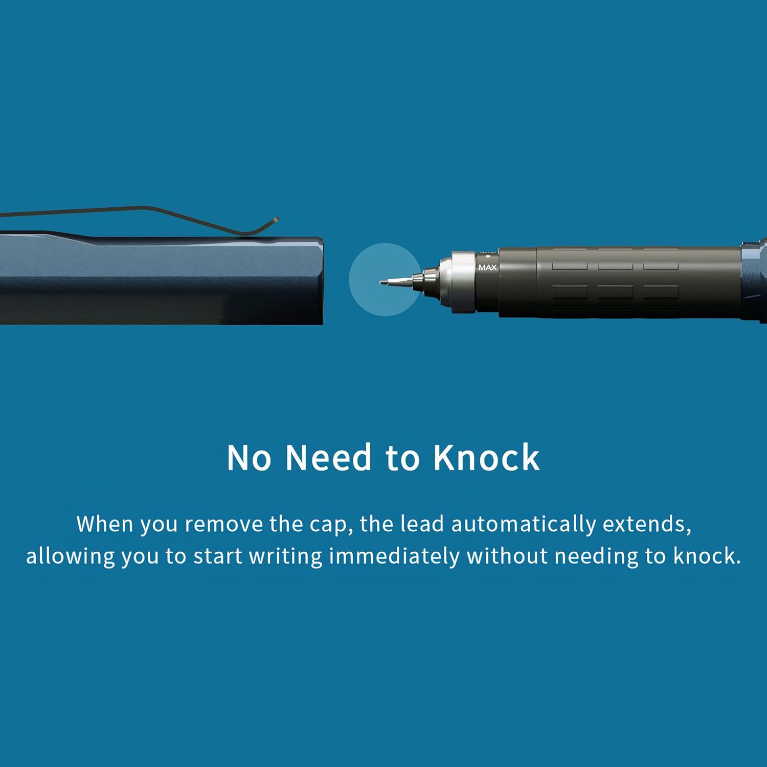 No need to knock - when you remove the cap, the lead automatically extends, allowing you to start writing immediately. The pencil is ideal for those who are looking for a reliable and stylish writing instrument. Get your hands on this unique piece today!