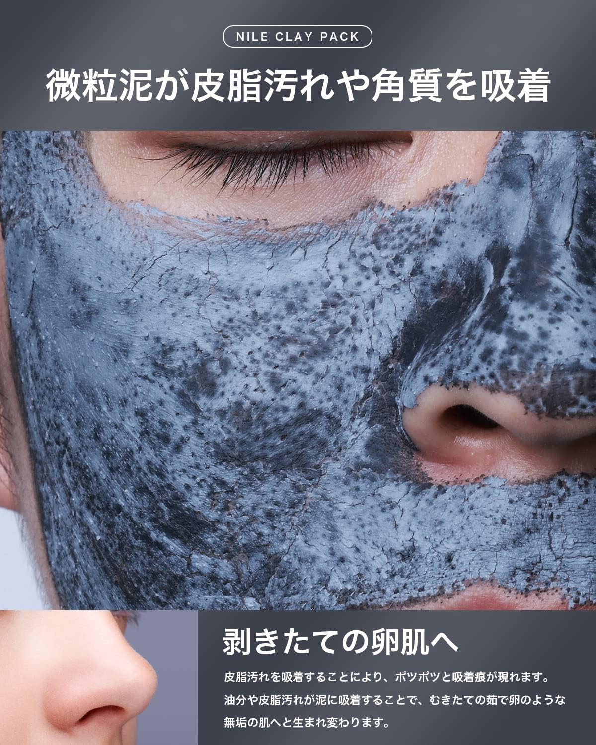 The NILE Mud Pack is a skincare product formulated to deeply cleanse pores, remove blackheads, and exfoliate dead skin cells. It utilizes four types of mineral-rich clays—bentonite, sea silt, Tanakura clay, and Moroccan lava clay—to effectively absorb impurities and excess oil, leading to clearer and smoother skin.