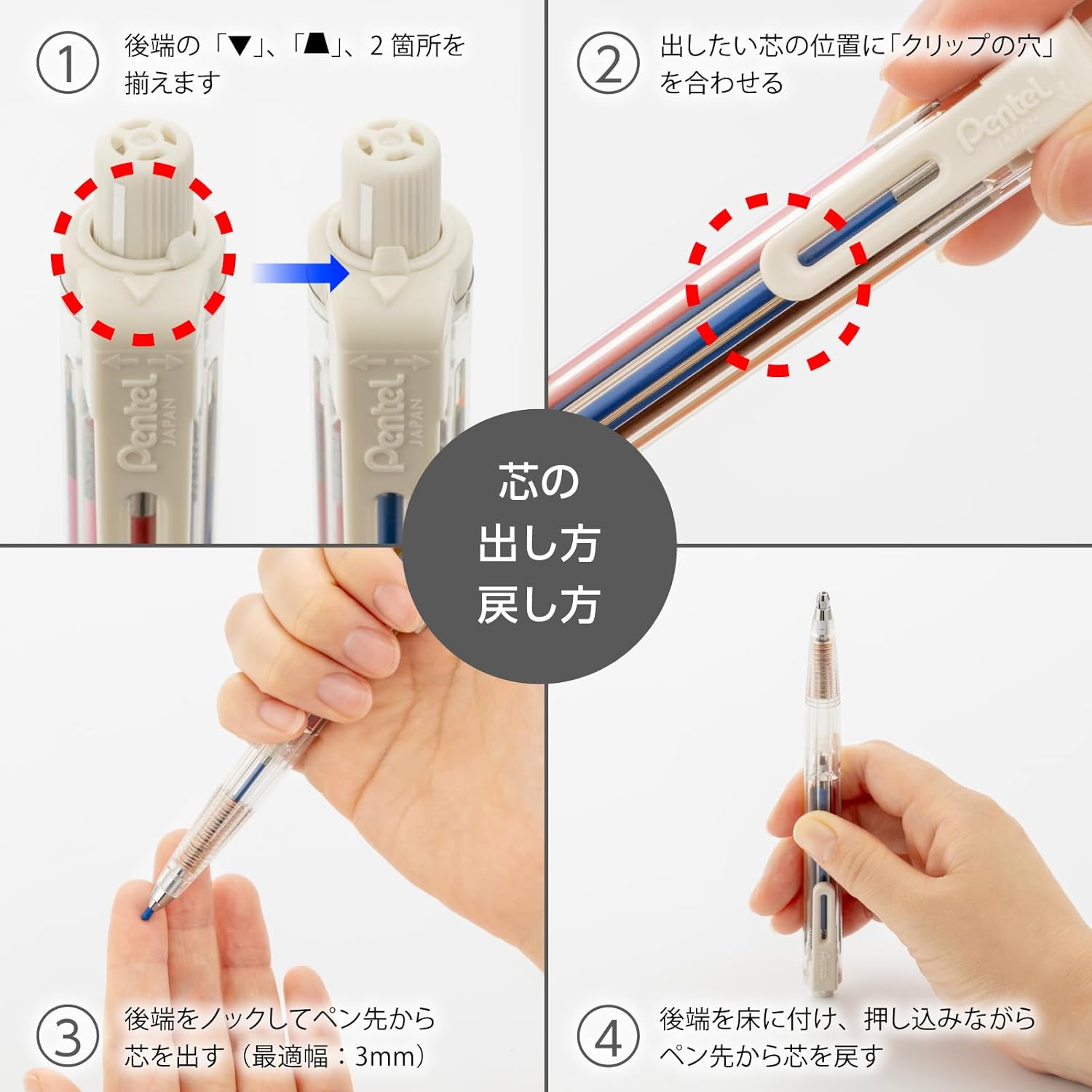 3. Knock the back axis and remove the lead from the tip (optimal width: 0.1 inch (3 mm)
