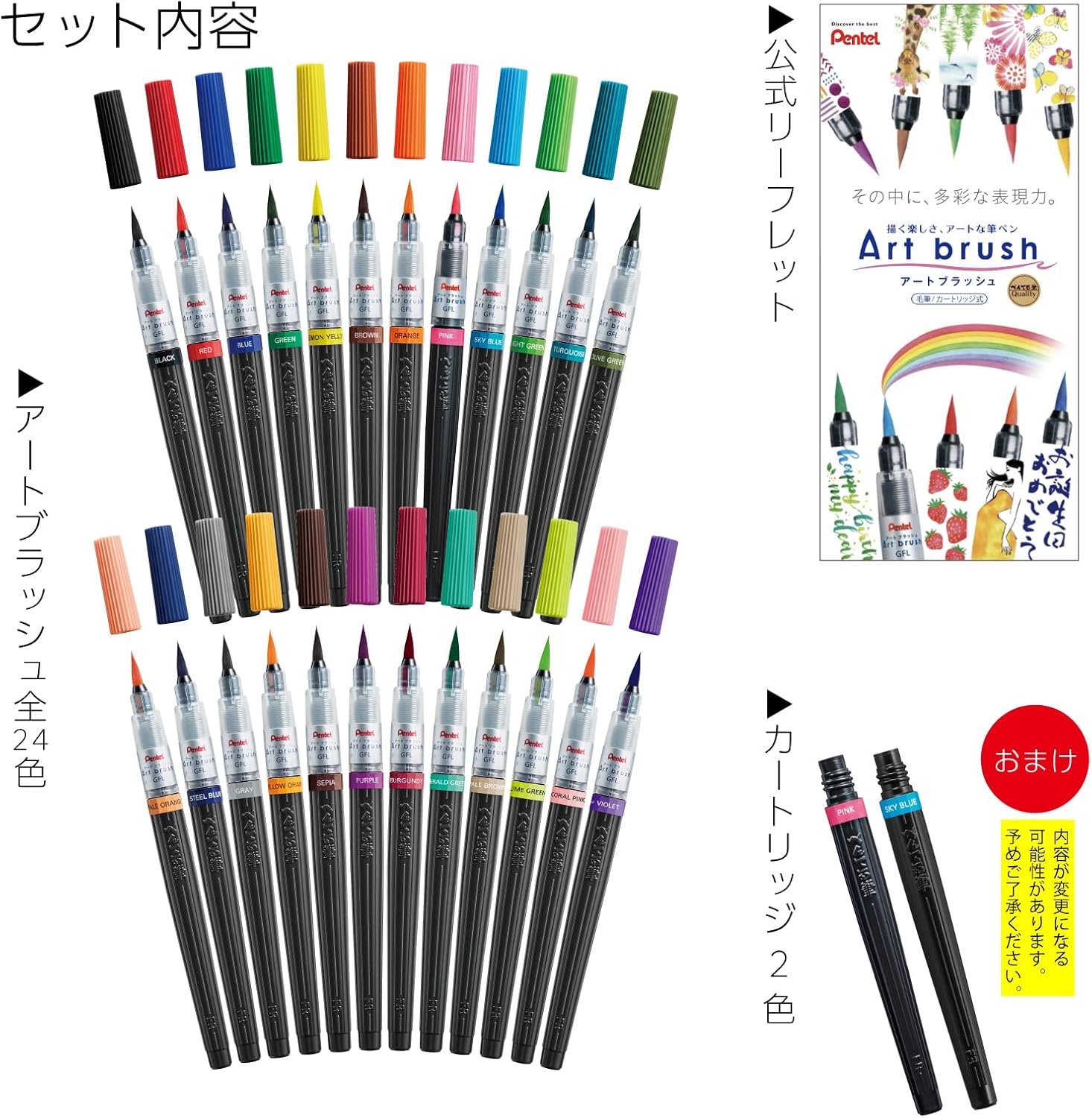 Pentel XGFL24 Color Brush Pen Art Blush 24 Color Set with Bonus Cartridge