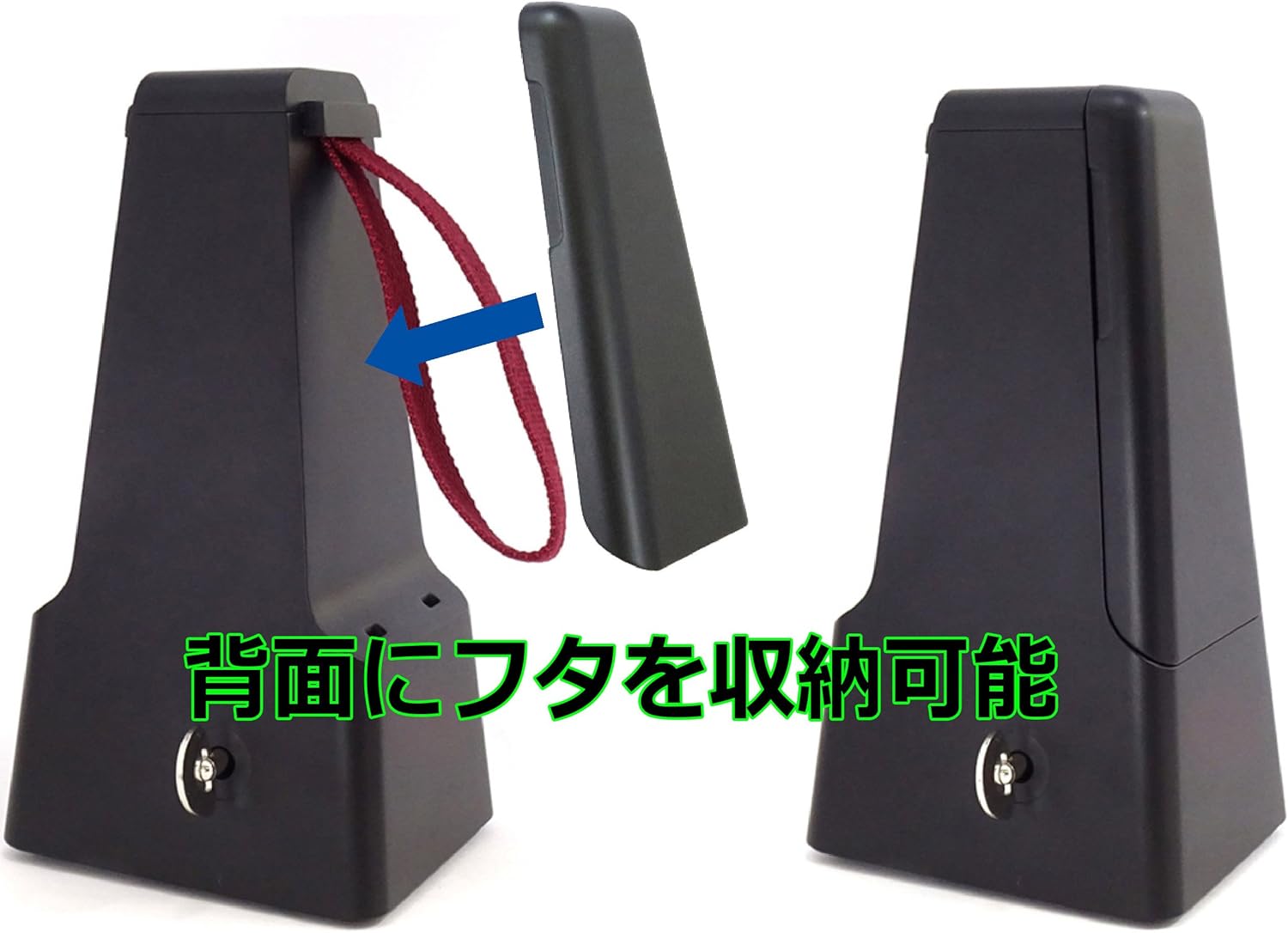 - Storage: The lid can be smartly stored on the back of the main unit while the metronome is in use. This simple feature prevents the lid from being lost, damaged, or interfering with the pendulum's motion.
