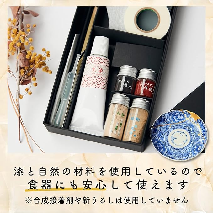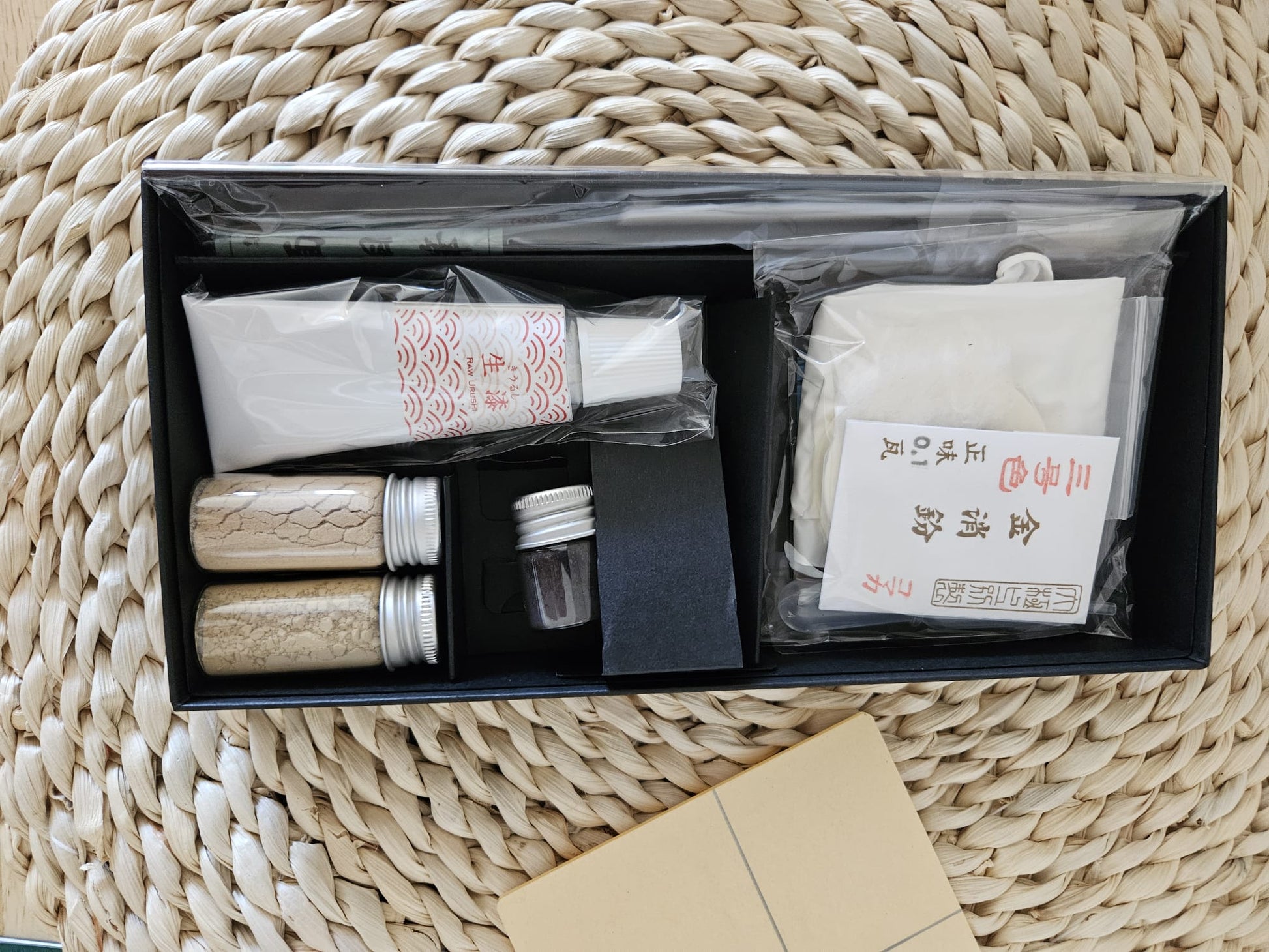 This set contains gold powder, genuine lacquer, natural ingredients, and face-brush. Suggested use of raw lacquer is about 1 year to avoid lacquer drying over time. Wonderful as a gift for yourself or anyone passionate about Japanese culture and art of kintsugi repair.